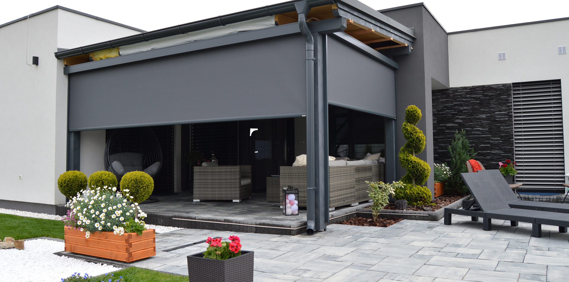 Rolety Veranda sú kombináciou vysoko kvalitného materiálu a moderného designu. Sú vhodné pre montáž na akúkoľvek konštrukciu zimnej záhrady alebo pergoly.