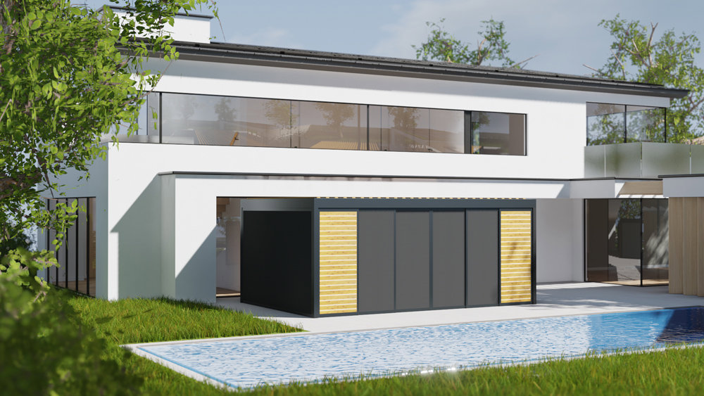 Samonosná bioklimatická pergola ARTOSI s inovatívnym a čistým dizajnom z vývojového oddelenia spoločnosti ISOTRA. Základné rozmery výrobku šírky 4,5 m a výsuvu až 7 m spĺňajú prísne nároky na súčasný užívateľský komfort.
